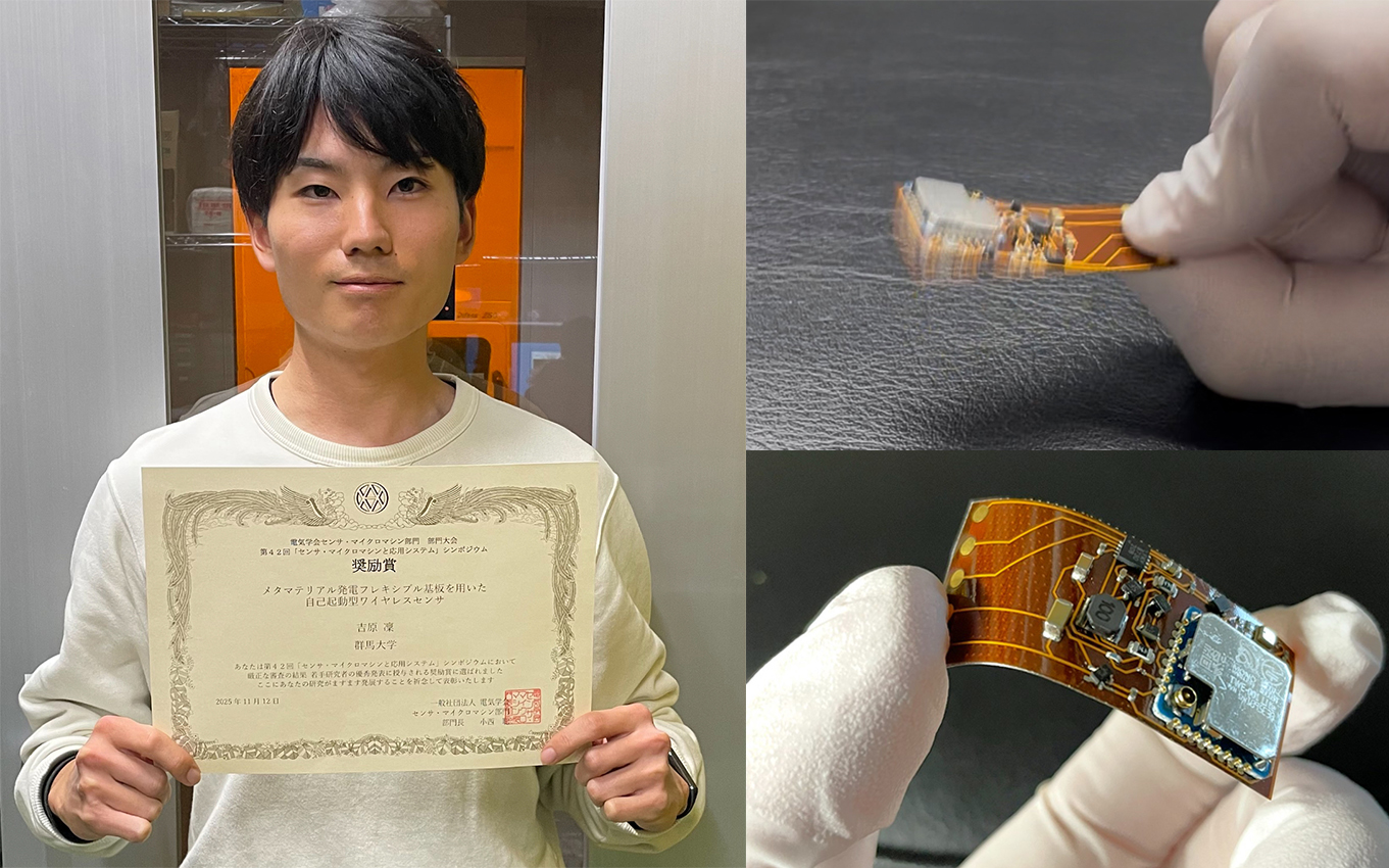 本研究は、JSPS科研費JP23H01363、JST大学発新産業創出基金事業 スタートアップ・エコシステム共創プログラムJPMJSF2319、および、群馬大学重点支援プロジェクトG2等の支援を受けて実施されました。研究グループでは、今回の受賞を励みに、誰もが意識せずに最先端技術の恩恵を受けられる「電池のいらない社会」の実現に向けて、今後も実用化を目指した研究開発を進めてまいります。